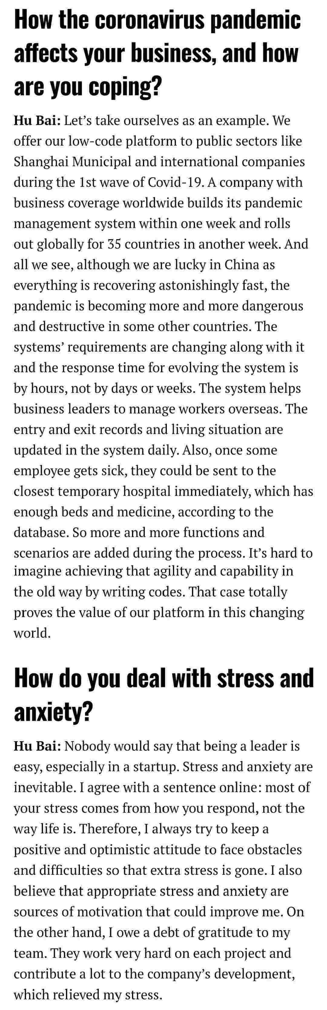 2021年年初,,,,,,,,,,爱湃斯科技CEO胡柏受邀接受法媒Startup.info的专访,,,,,,,与Startup info的读者分享了自己的创业经历、、、、、、、、、、以及低代码平台小米钱包的创新之处。。。。。。。。。。。